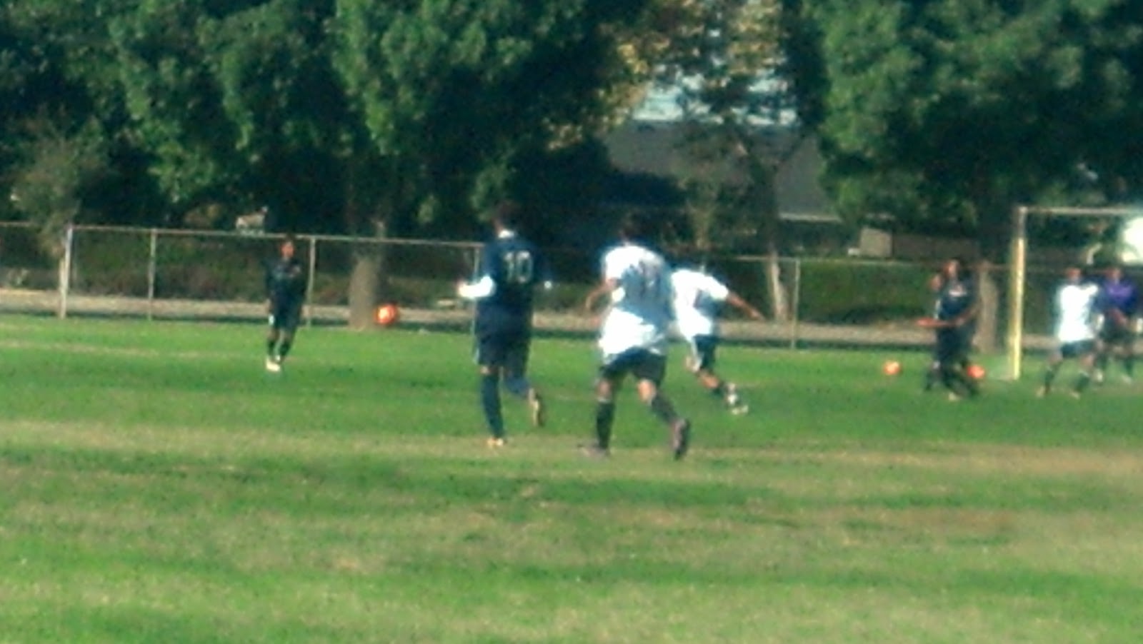 (playing left defense while keeping an eye on the ball, but I had to be careful the guy from behind me didn't make the sprint and get passed me.)